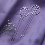 Versatile and stylish, the Geometric Silver Chain Earrings are the perfect complement to both casual and formal attire. Whether worn with a chic daytime ensemble or as a finishing touch to an evening look, these earrings are sure to turn heads wherever you go. The silver chains delicately drape from the geometric elements, adding movement and fluidity to the design.