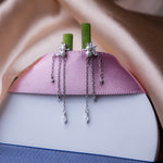 Our Elegant Silver Drop Ear Cuffs boasts a silver chain meticulously crafted from high-quality sterling silver, ensuring durability and a polished finish that catches the light with every movement. The chains elegantly cascade, creating a graceful and dynamic effect. The addition of pearls adds a timeless touch, infusing the design with a sense of traditional beauty.