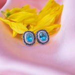 Embrace the allure of the Blue Lagoon Embellished Studs and elevate your style with these exquisite earrings. Each stud features a mesmerizing blue lagoon gemstone, reminiscent of tranquil waters and serene skies. The rich hue of the gemstone is enhanced by delicate embellishments.