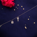 Unlock the secrets of style with Asesha's Enchanted Lock & Key Bedazzled Charm Bracelet, a captivating accessory that combines fantasy with sophistication. Each intricately crafted detail sparkles with brilliance, adding a touch of glamour to your ensemble.