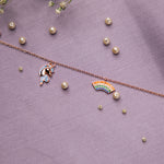 Step into a world of magic and wonder with Asesha's Magical Enchantment Unicorn and Rainbow Charm Bracelet, a delightful accessory that captures the essence of fantasy and imagination. The enchanting design evokes feelings of joy, innocence, and limitless possibilities, capturing the essence of childhood fantasies.